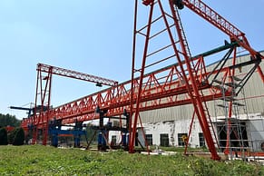 Le portique de lancement de segments assemblés est largement utilisé pour la construction de poutres en béton armé sur les autoroutes et les voies ferrées. Il peut ériger des ponts droits, des ponts obliques et des segments de pont incurvés. Lorsque le portique de lancement assemblé par segments érige des poutres en béton armé, celles-ci sont assemblées pièce par pièce selon l'ordre des poutres. En même temps, une précontrainte est appliquée, et après l'installation de l'ensemble des poutres de section, des joints secs et des joints humides sont construits pour en faire finalement une structure complète. Ensuite, on l'installe travée par travée selon la direction d'installation prédéterminée et on avance travée par travée, pour finalement terminer la construction de l'ensemble du pont.