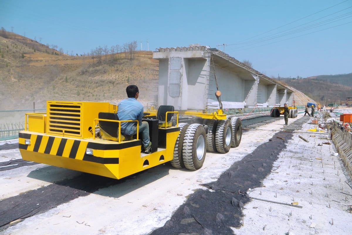 Le porte-poutre préfabriqué est l'outil spécial le plus idéal pour le transport des poutres préfabriquées dans le processus de transport des ponts. Il convient principalement aux sites d'érection de pont, aux chantiers de poutres préfabriquées et aux occasions où le site d'érection de pont est éloigné. L'ensemble de la grue est une machine de transport composée de deux structures opérationnelles indépendantes (grue principale et auxiliaire). Le centre de gravité conçu par des professionnels est généralement utilisé pour le transport de poutres en T, de poutres en caisson et de poutres diagonales à 45°, ce qui simplifie le processus de transport et améliore l'efficacité globale de l'ingénierie.