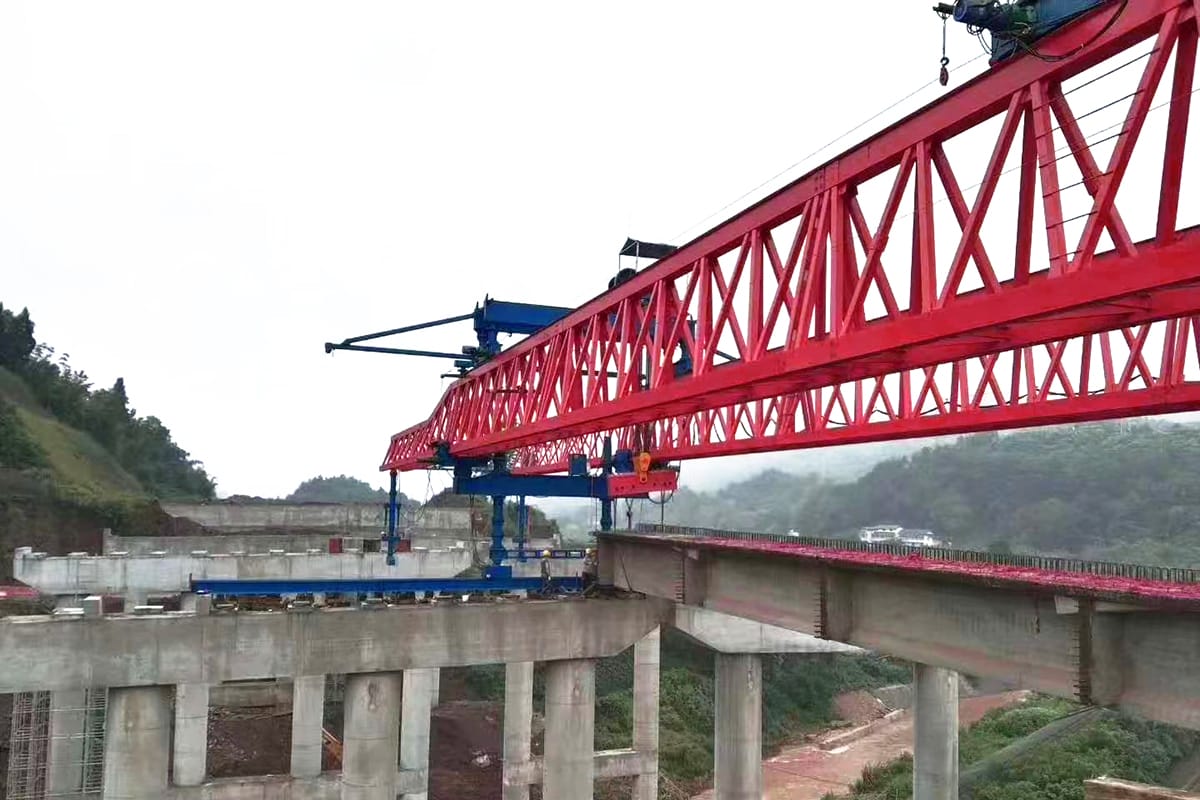 Le lanceur de poutre auto-équilibré est composé d'une poutre principale, de jambes avant, médianes et arrière, de stabilisateurs auxiliaires avant, d'une traverse supérieure, d'une grue, d'une voie de déplacement horizontale et du système électrique de la machine hydraulique. Elle peut ériger des poutres caissons droites, courbes et longitudinales à portée égale et variable en béton précontraint à double ligne. Il présente les caractéristiques suivantes : bonne stabilité du levage de la poutre, efficacité élevée du travail, sécurité et fiabilité, ajustement pratique de la portée variable et fonctionnement pratique.